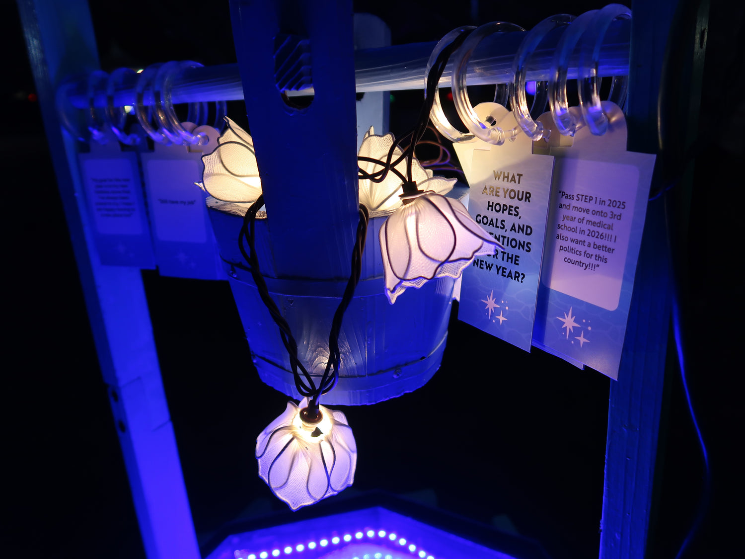 A lighting installation for the City of Redmond’s month-long Redmond Lights event at Downtown Redmond Park. The piece creates a space for reflection as the year comes to an end, featuring community wishes gathered in advance and strung along the well for visitors to read. Infinity lights and mirrors inside the well evoke a sense of hope, wonder, and quiet introspection. -